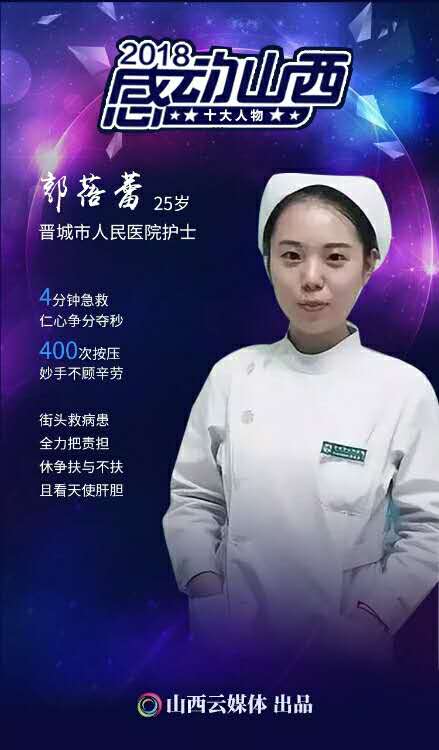 我市人民醫(yī)院護士郭蓓蕾當選2018“感動山西”十大人物(圖片來源山西日報)