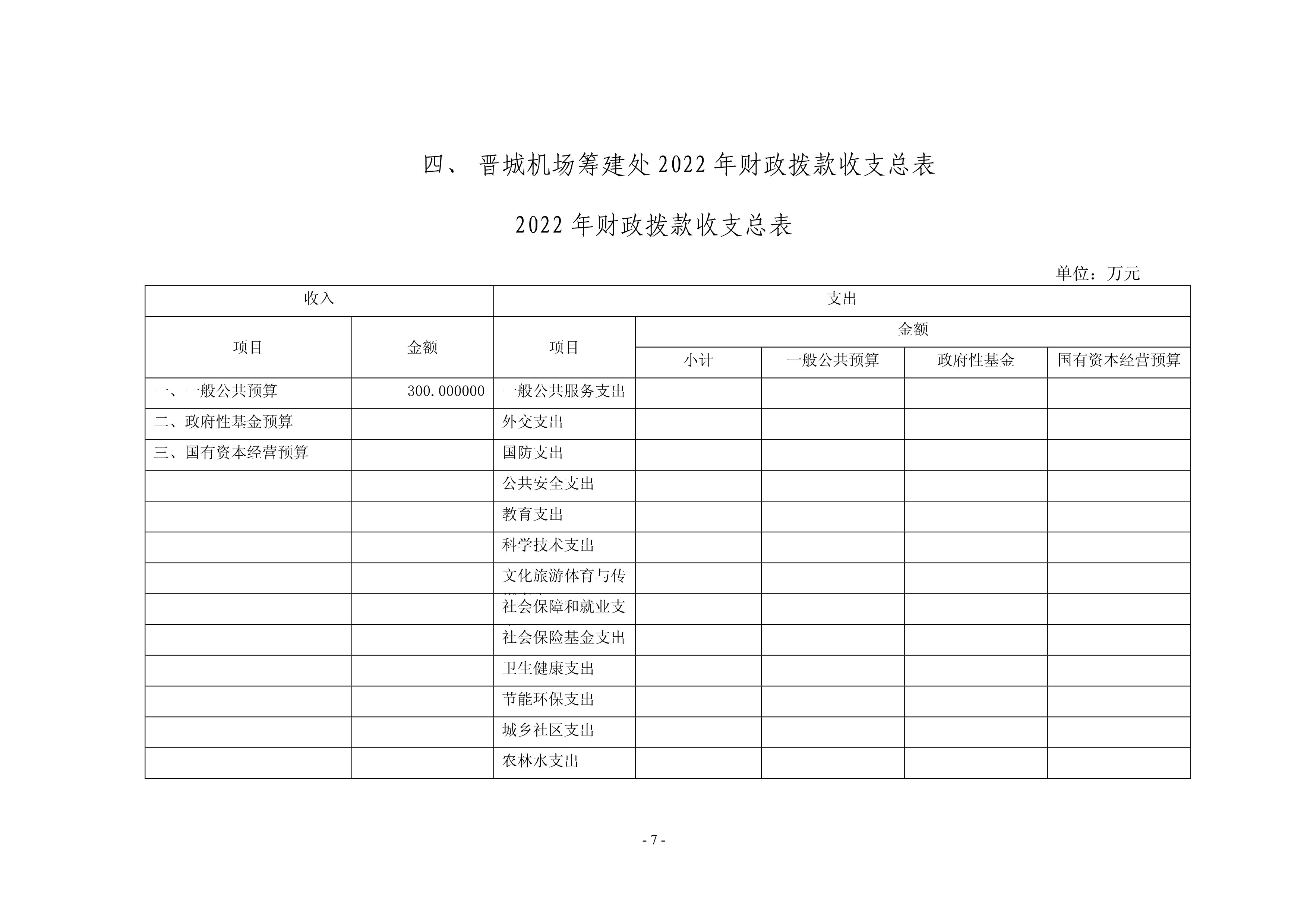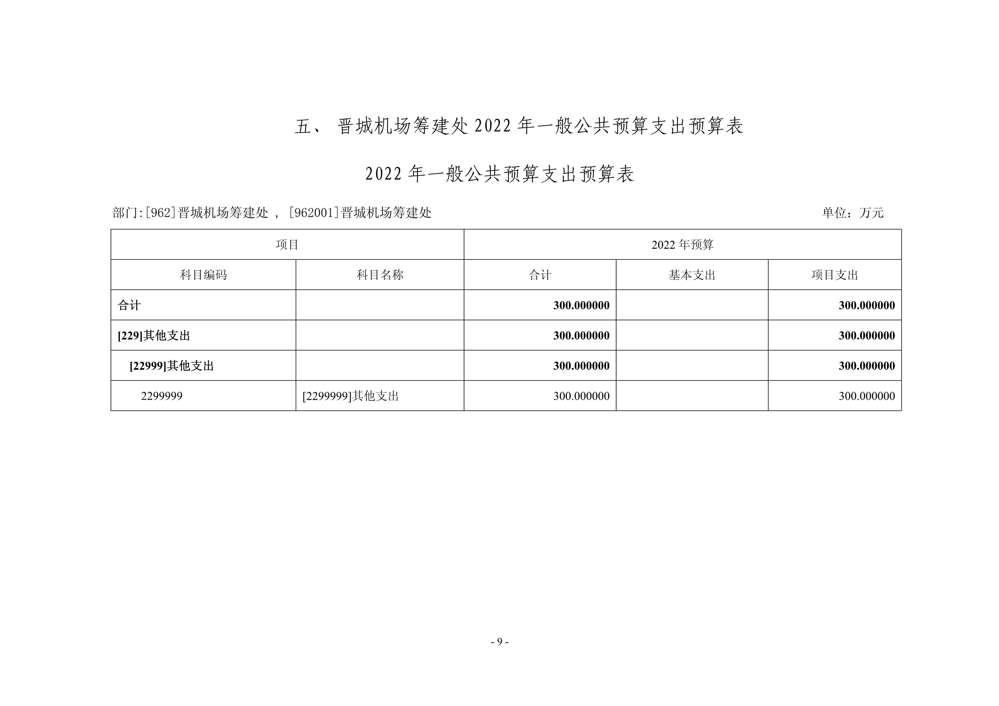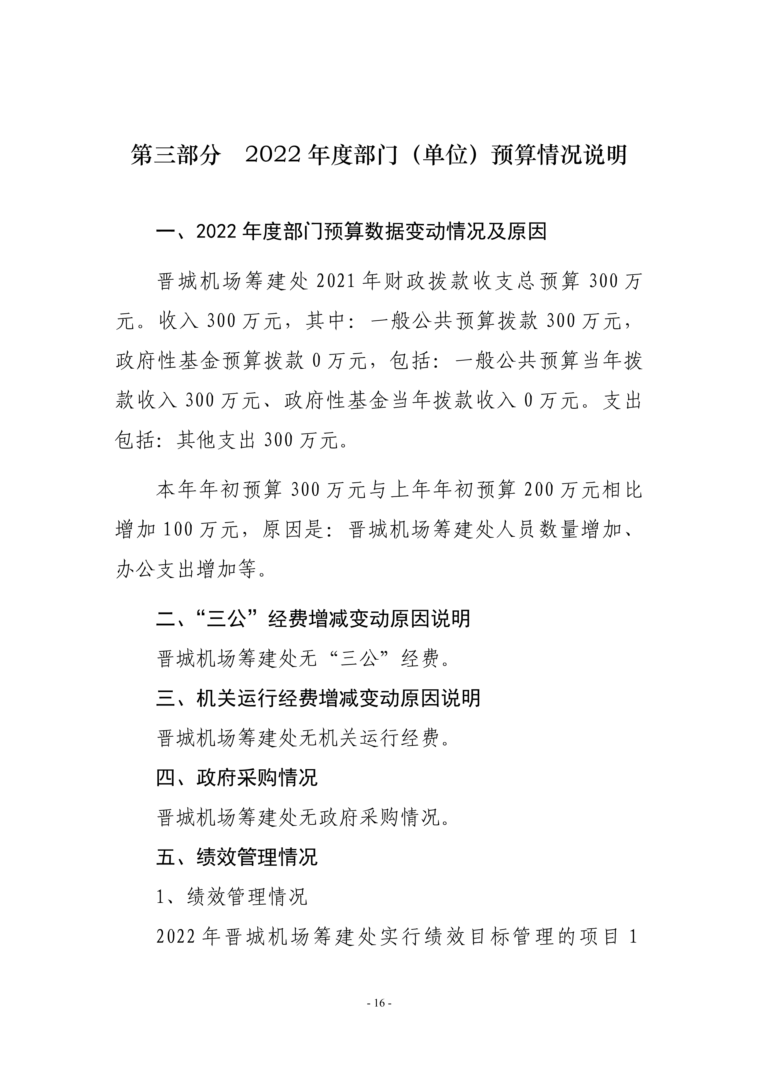 晉城機(jī)場(chǎng)籌建處2022年度預(yù)算公開(kāi)