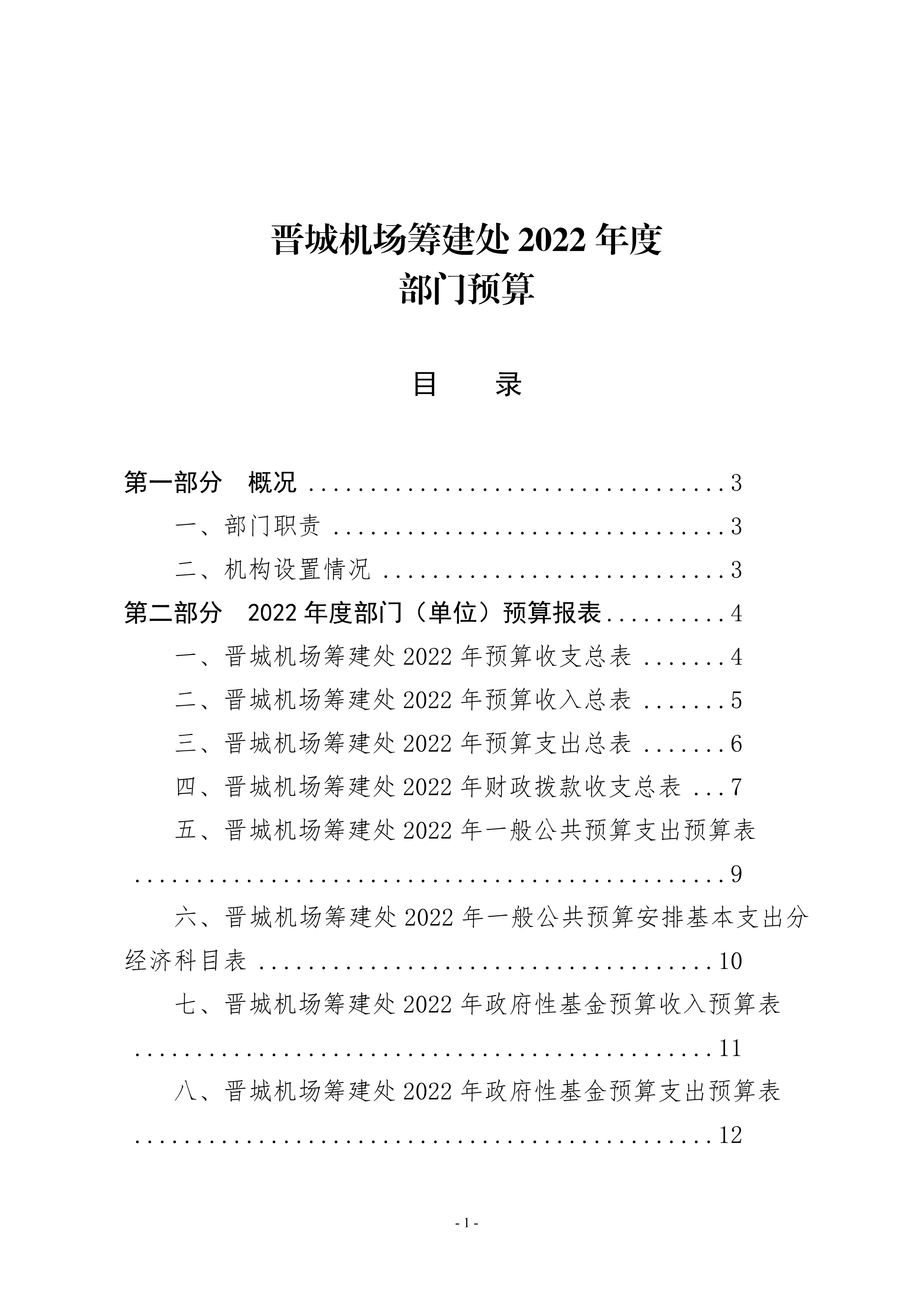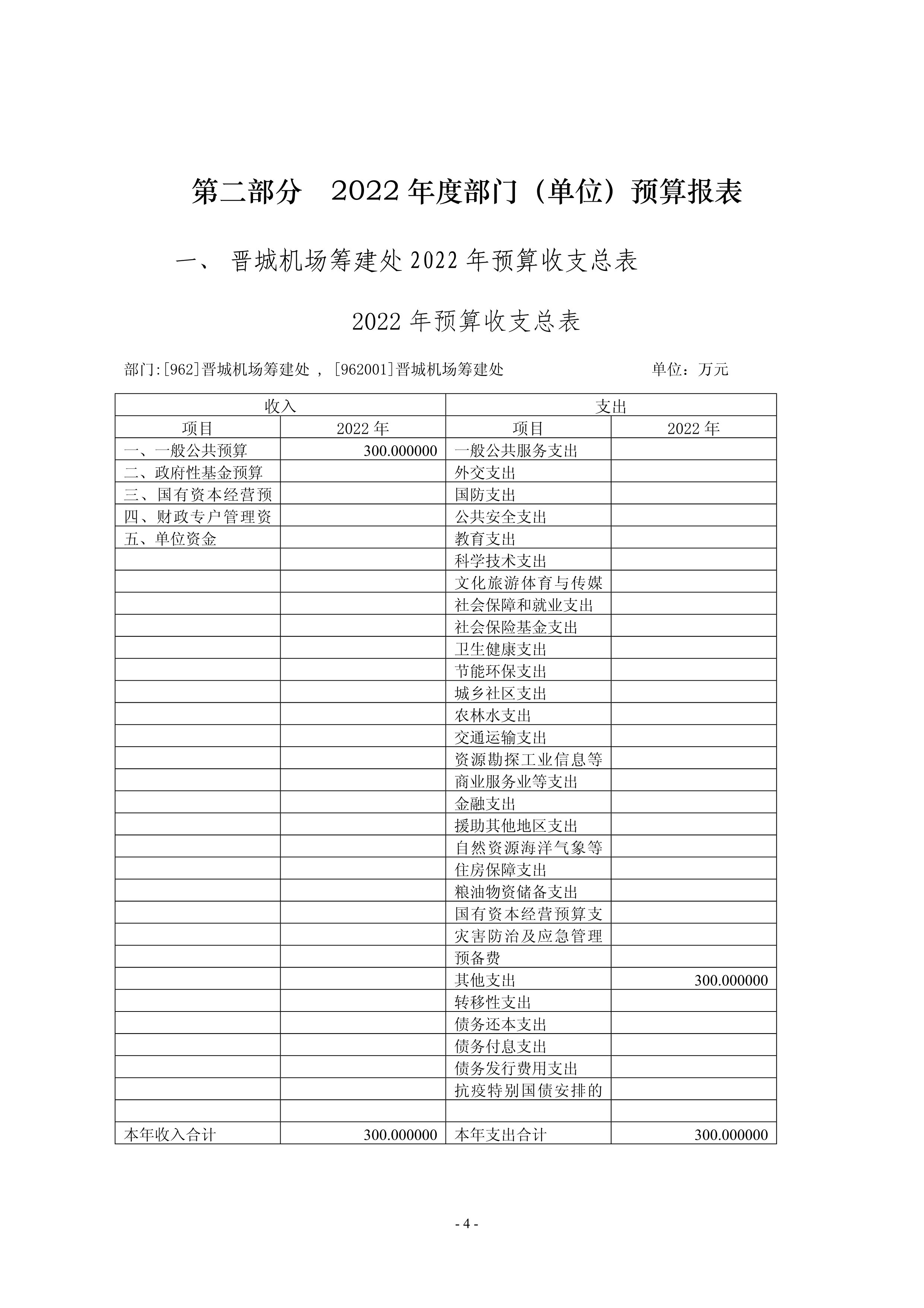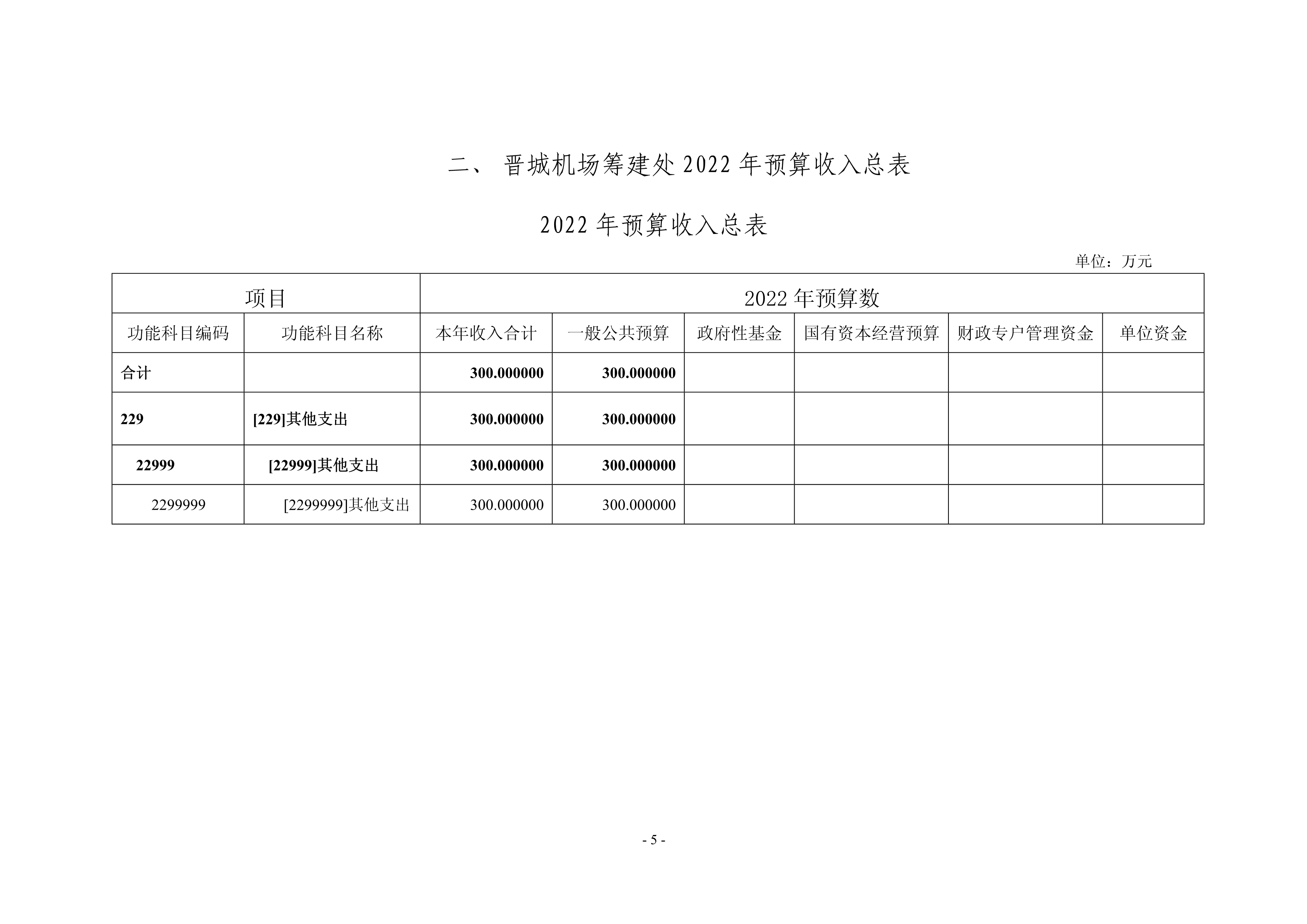 晉城機(jī)場(chǎng)籌建處2022年度預(yù)算公開(kāi)