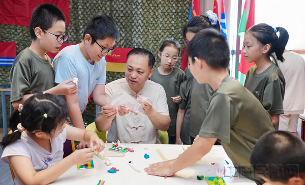 在剛健的軍事訓(xùn)練之外,傳統(tǒng)文化的滋養(yǎng)為暑托班增添了溫潤(rùn)的底色。皮影戲的光影流轉(zhuǎn)間,孩子們驚嘆于非遺技藝的奇妙;博物館專(zhuān)家走進(jìn)東航,用生動(dòng)的講解揭開(kāi)歷史文物的面紗,讓千年文化在孩子們眼中鮮活起來(lái);集體繪畫(huà)長(zhǎng)卷上,他們以童真筆觸勾勒出心中的祖國(guó)與東航;手工制作課上,面塑等傳統(tǒng)技藝的體驗(yàn),讓孩子們?cè)趧?dòng)手間感受先輩智慧。從傳統(tǒng)藝術(shù)到歷史底蘊(yùn),多元課程讓民族自豪感在孩子們心中油然而生。