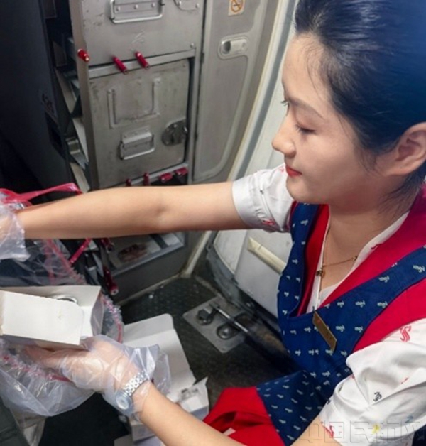 乘務(wù)員張涵立刻安撫道:“您別著急,我馬上回服務(wù)間的餐車內(nèi)給您找。”她迅速回到后艙服務(wù)間在收完餐的餐車中仔細翻找,逐一查看收回的餐盒,生怕有任何的遺漏。
